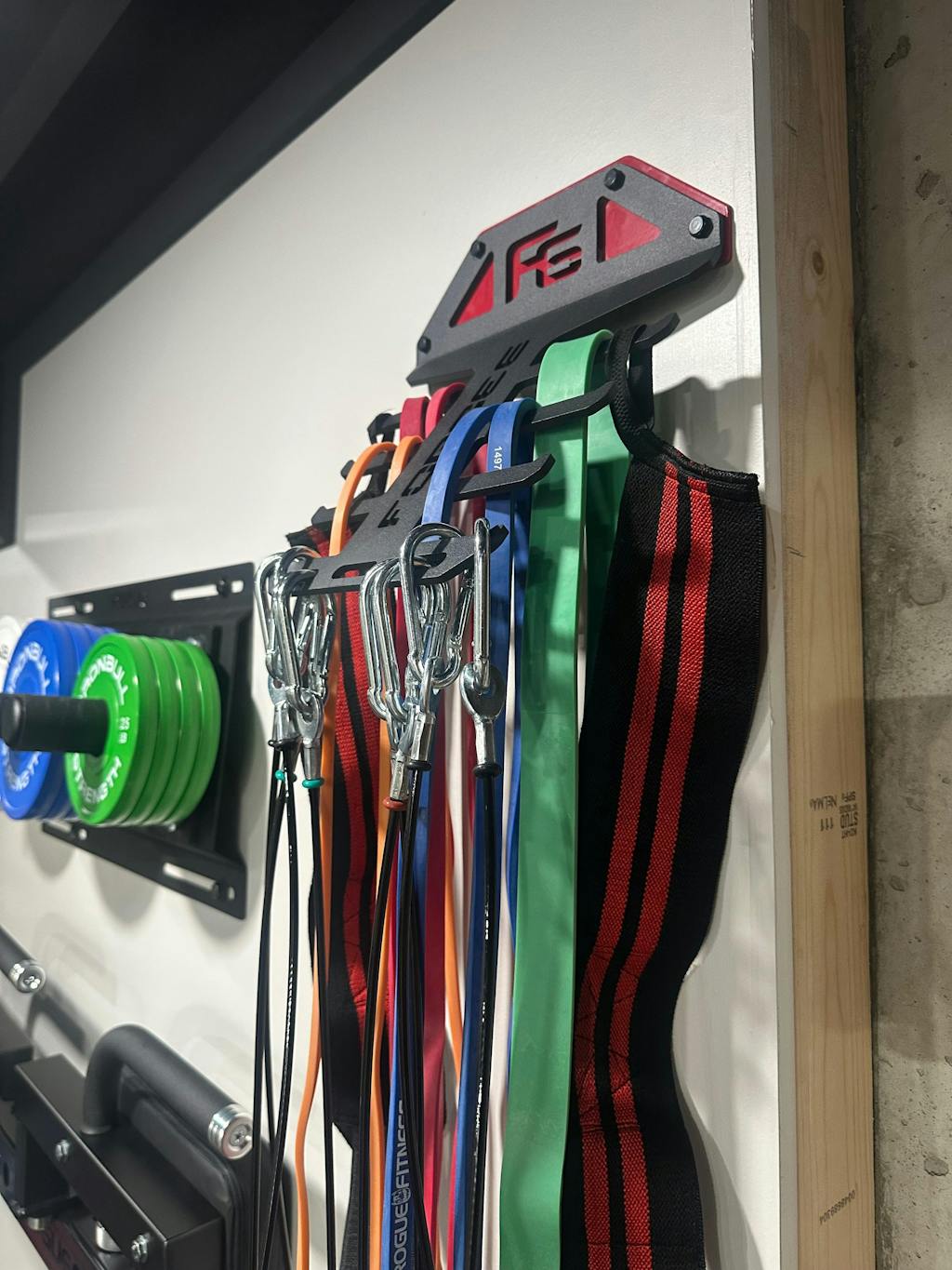 Introducing The Resist Rack – a sleek and functional solution for organizing your resistance bands. This wall-mounted storage hanger is designed to optimize your workout space, providing convenient access to your fitness essentials.