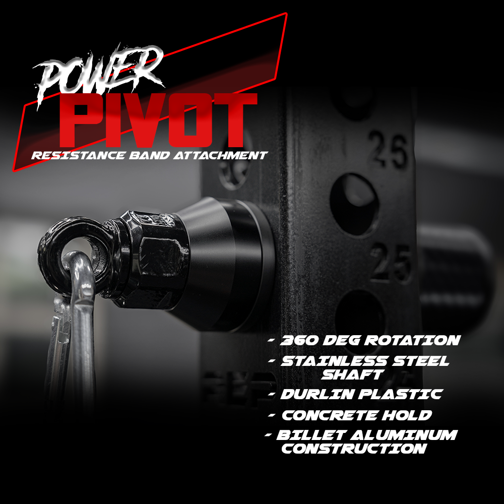 Unlock the full potential of your resistance bands with the Power Pivot — a premium power rack attachment engineered for serious strength work. Designed to mount securely to any 3x3 rack with 1-inch or 5/8-inch holes, the Power Pivot creates a rock-solid, 360° rotating anchor point for all your resistance band exercises.