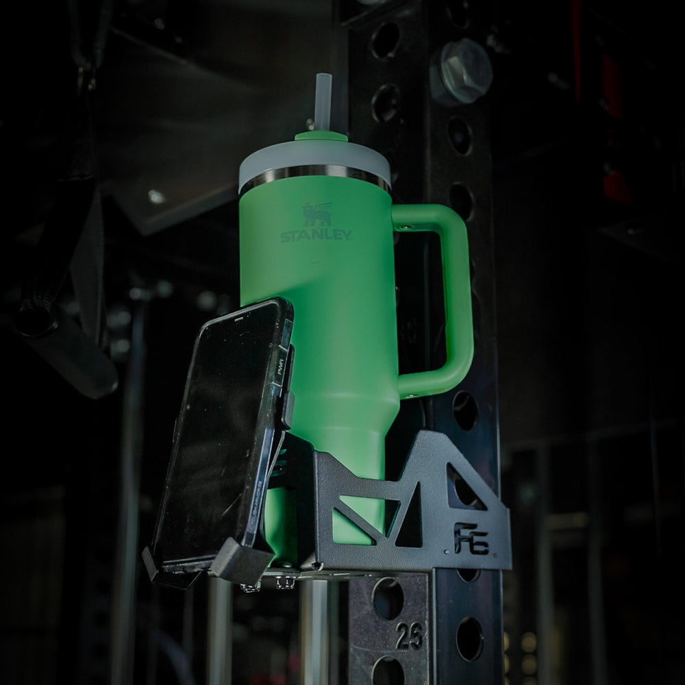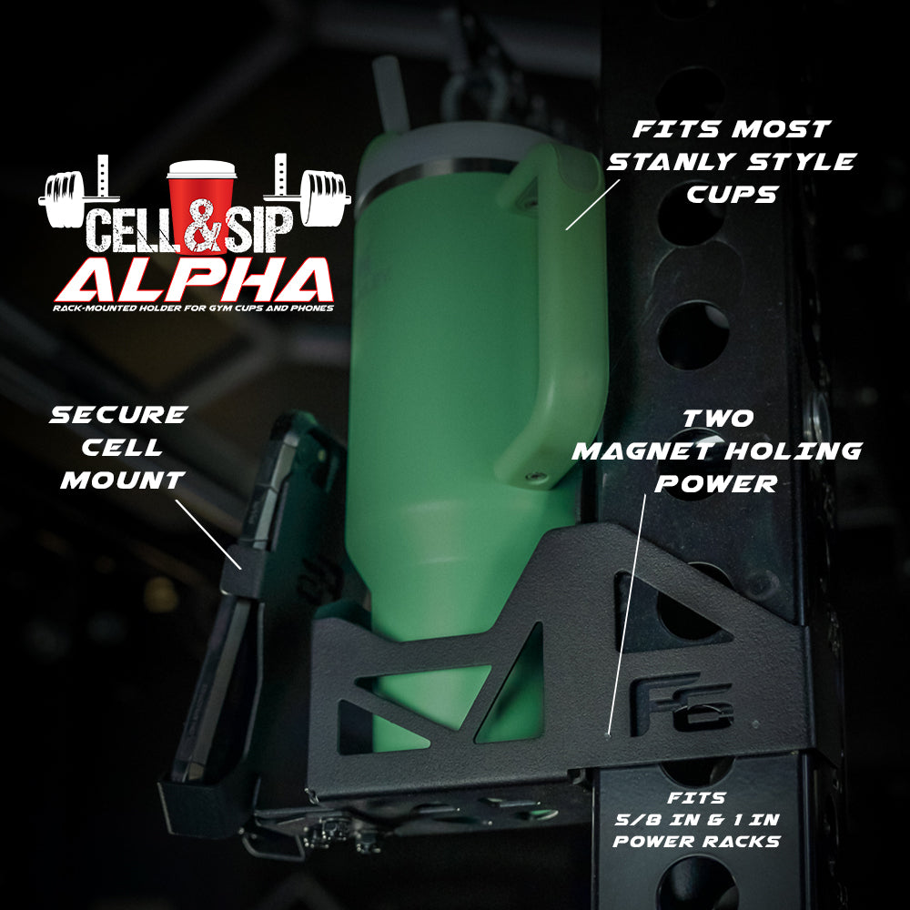 Keep your essentials within arm's reach during your workouts with the Sip & Cell Alpha. Designed for 3x3 power racks with 1-inch or 5/8-inch holes, this innovative holder securely attaches to your rack using two strong magnets, ensuring it stays in place even during hardcore training sessions.